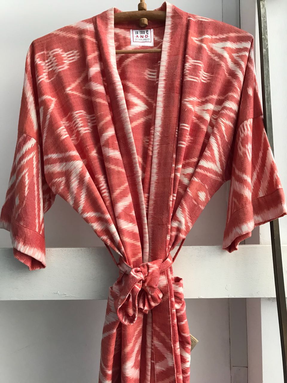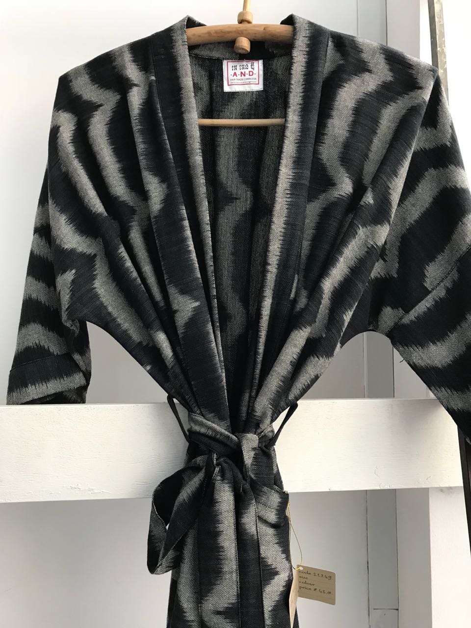 Hand woven pure cotton ikat long kimono.